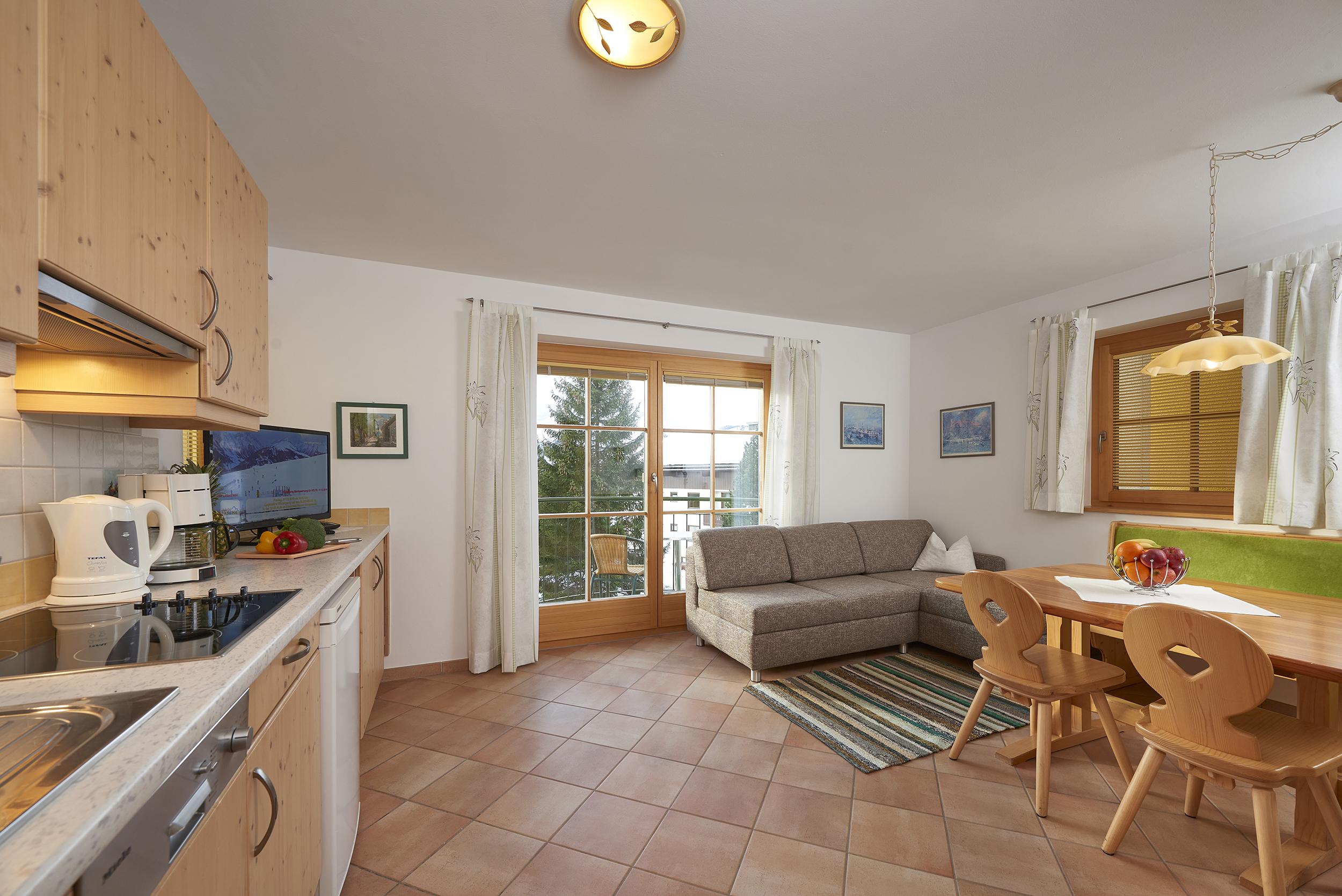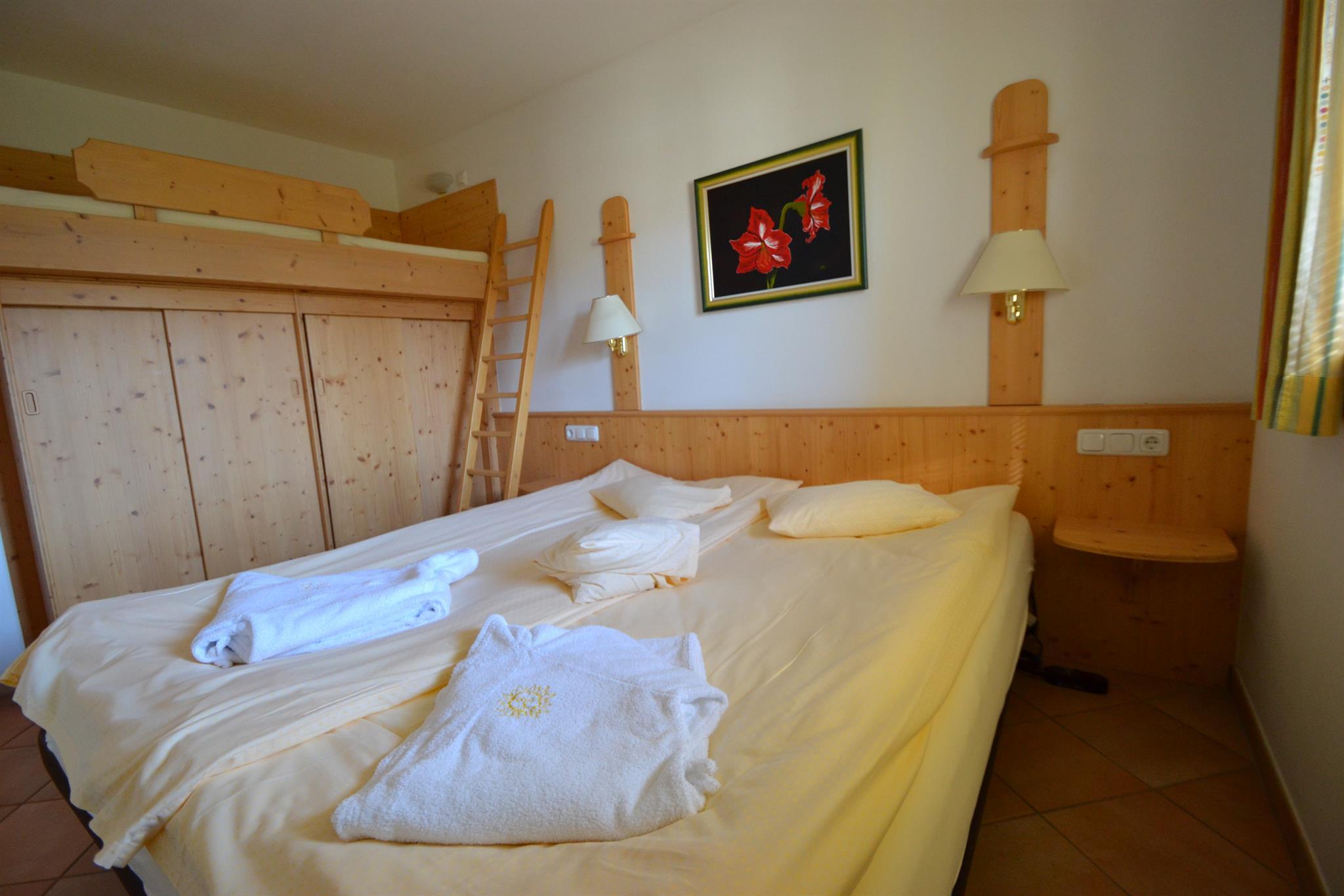 We provide our guests with a well-kept atmosphere in our apartments, a panoramic indoor pool, two wellness areas, a fitness room, and a children's playroom,