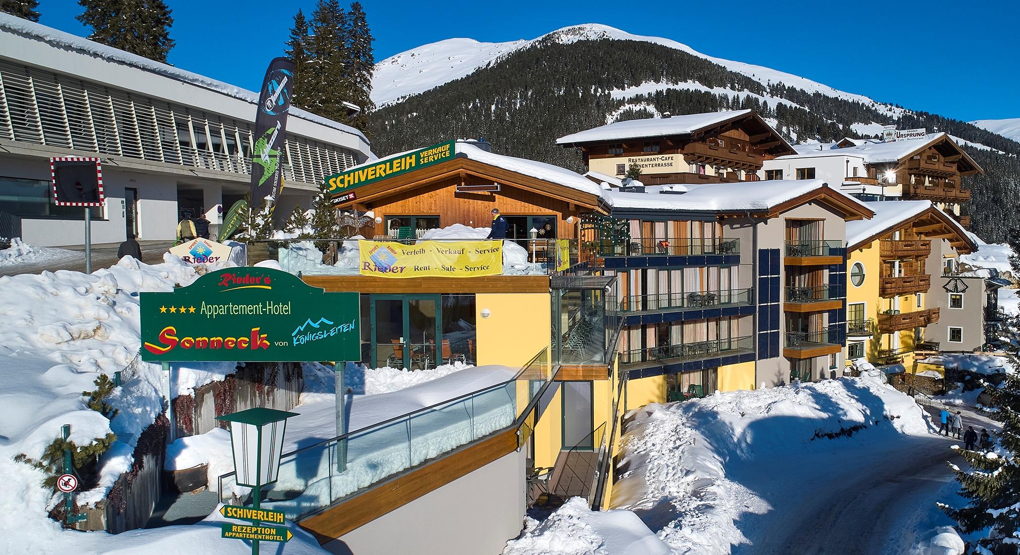 Our 4-star apartment hotel is located right next to the DORFBAHN Königsleiten in the Zillertal Arena.