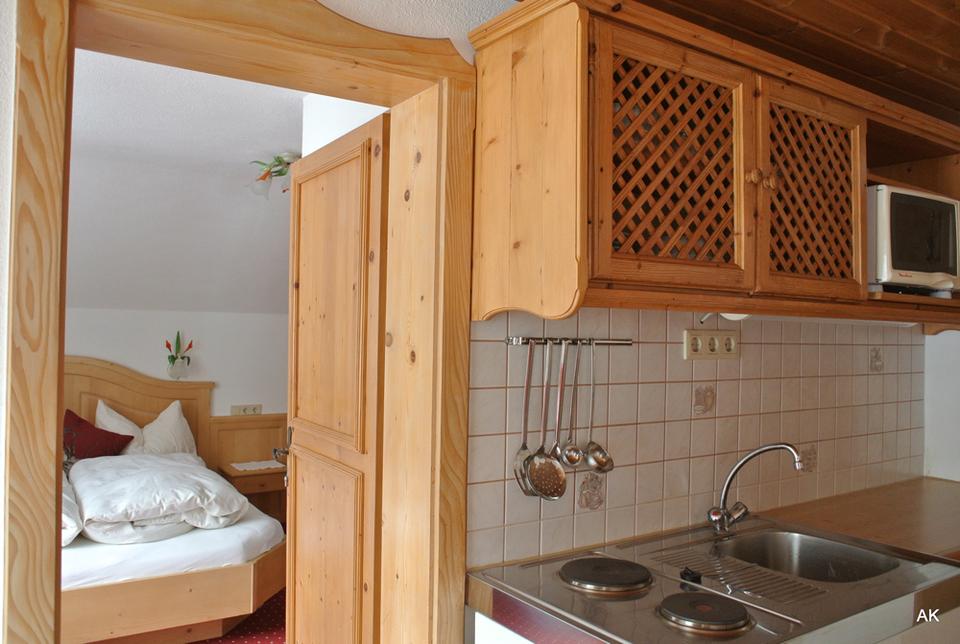 In our bed and breakfast you can rent comfortable, traditional Tirolean style rooms and fully equipped apartments. We offer you three different room types with balcony for up to four people. We serve a full breakfast daily in our cozy breakfast room. With its comfortable atmosphere our breakfast room is often used as a lounge during the day. You can also cook and enjoy evenings with family and friends in our Kellerstuberl , or use our terrace lounge which is equipped with a TV, games and a collection of books.