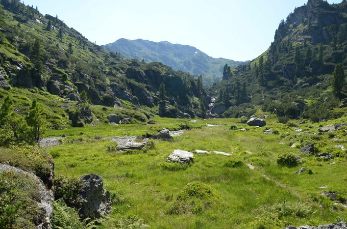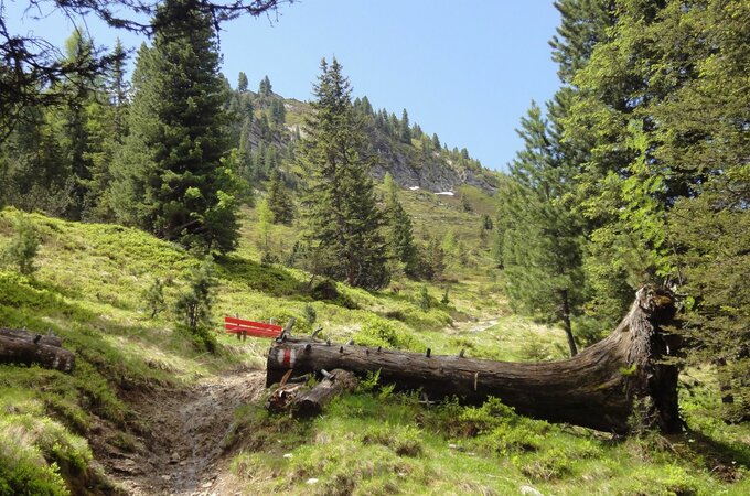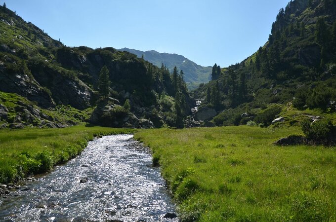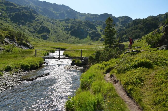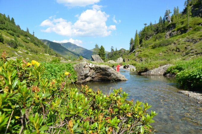 The Krummbach valley is the "thumb" of the five Gerlos side valleys and begins at the parking lot of the Isskogelbahn. In direction to the district Innertal you reach the "Krummbach" bridge after 700 meters. From here the trail starts rising slightly into the Krummbach valley (further trail on asphalt - suitable for baby carriages - to the Gasthof Almstüberl). Follow the gravel trail until you reach the junction, which leads you to the Prölleralm (Another option: if you branch off there, you will reach the Prölleralm after approx. 900m). Continue along the stream and you will finally reach the Krummbachrast. It is recommended to try out the cheese from the show dairy. After some replenishments, you can either head back or hikers in good condition can continue over Nöckentalalm until they reach the mountain station of the Isskogel cable car.