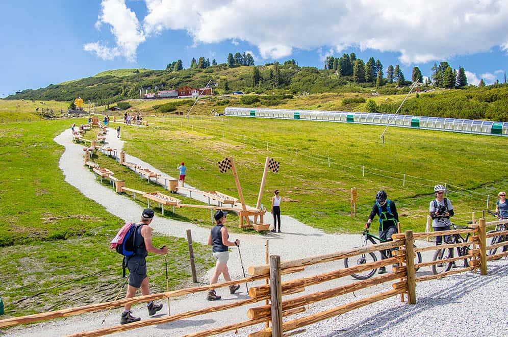 In summer and winter, the Arena Center can be easily reached with the gondola lift, in sommer also as a hiker.