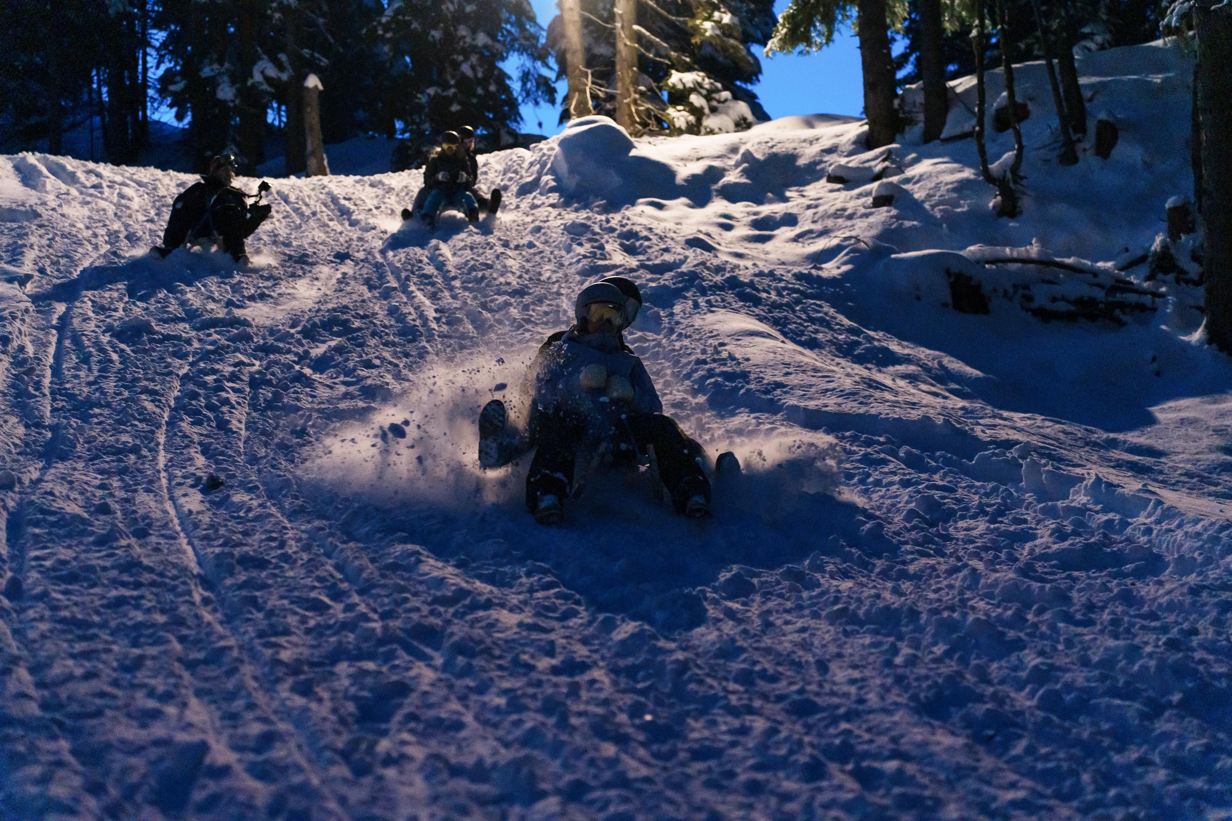 Der Rodelspaß führt über mehrere Kurven durch den Wald.