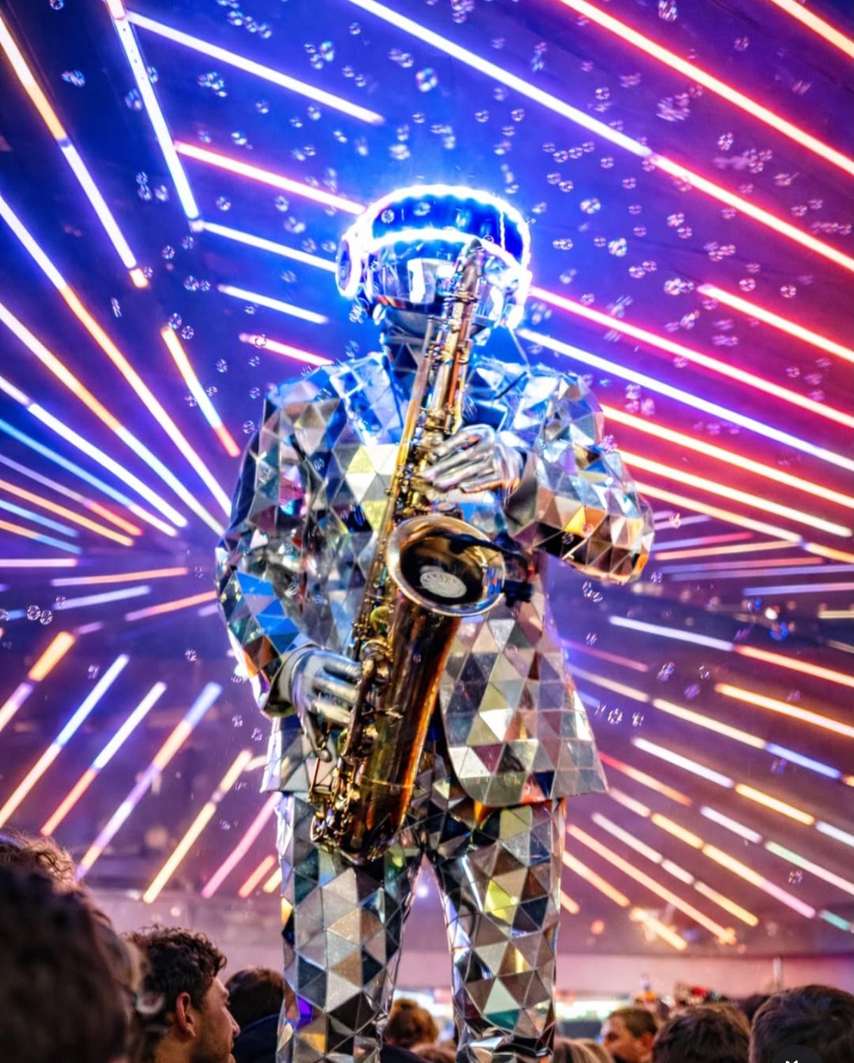 komt met zijn saxofoon in Martins skihut!