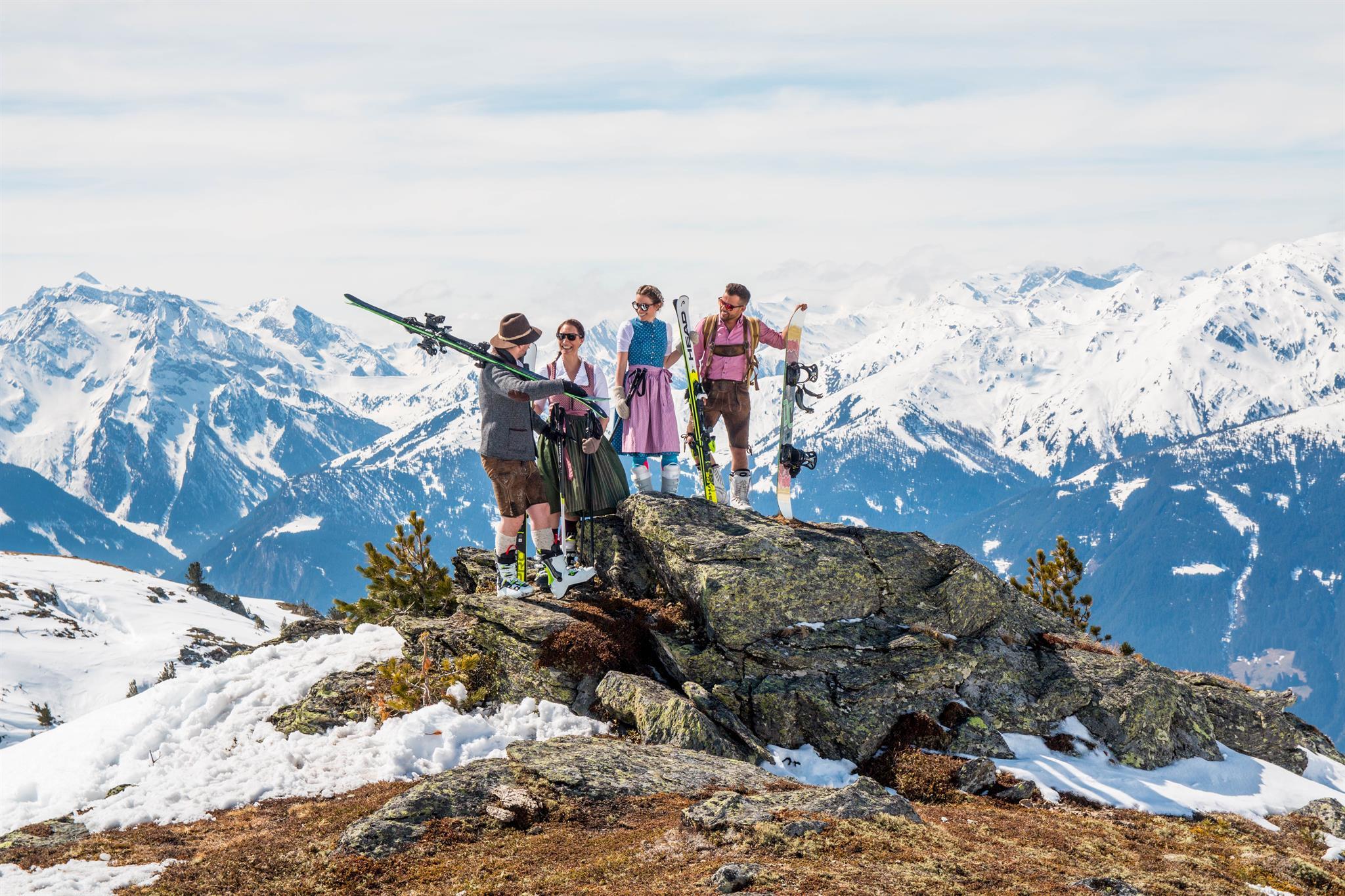Opkomende lentegevoelens en perfecte firn trekken in de Zillertal Arena traditioneel de dragers van de traditionele klederdracht naar de pistes. Want april nodigt niet alleen uit tot zonneskiën, maar staat geheel in het teken van lederhosen en dirndls.