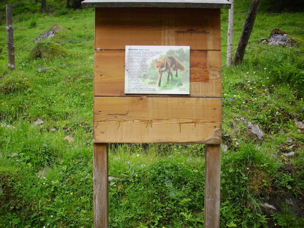 Langs het pad vindt u informatieborden met inheemse dieren (gems, arend, marmot, enz.)