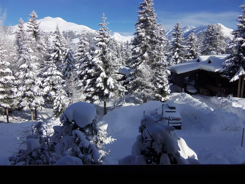 --Balkon met bank, uitzicht op de skipiste en Plattenkogel