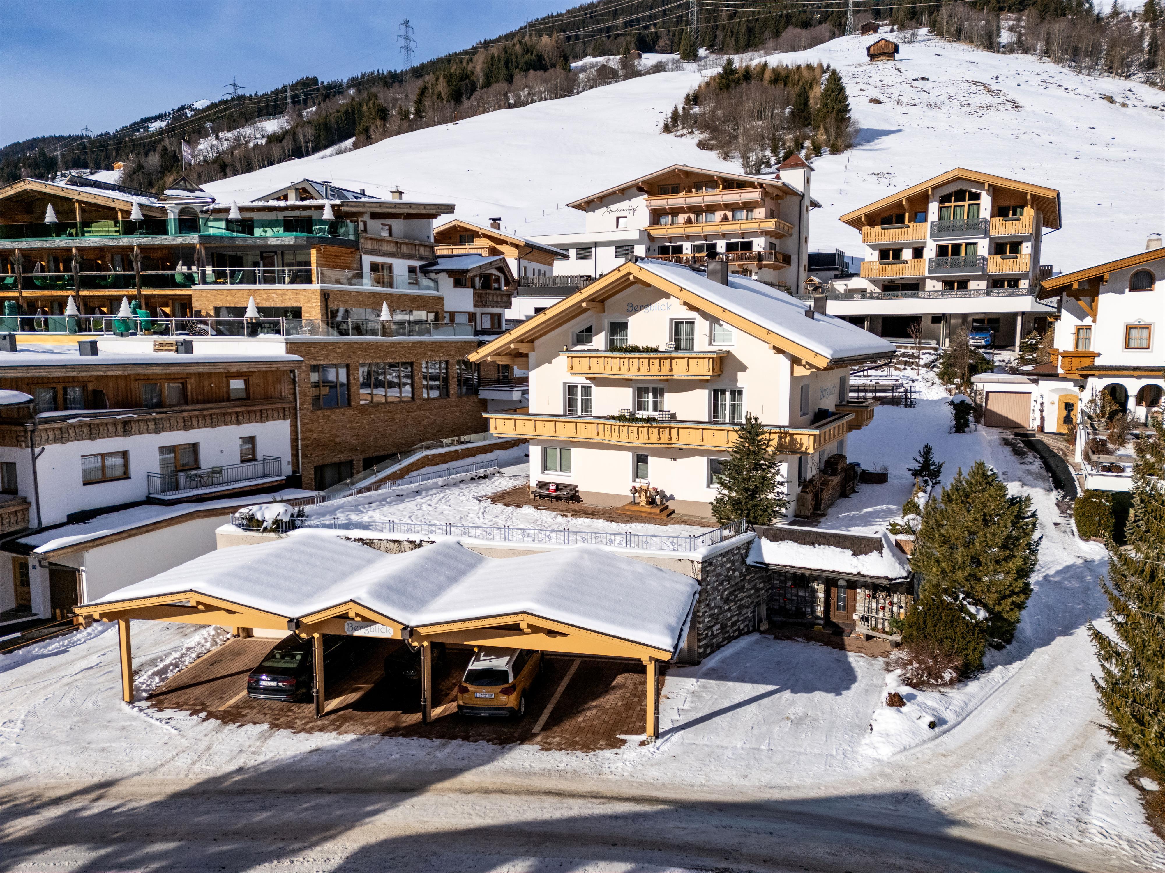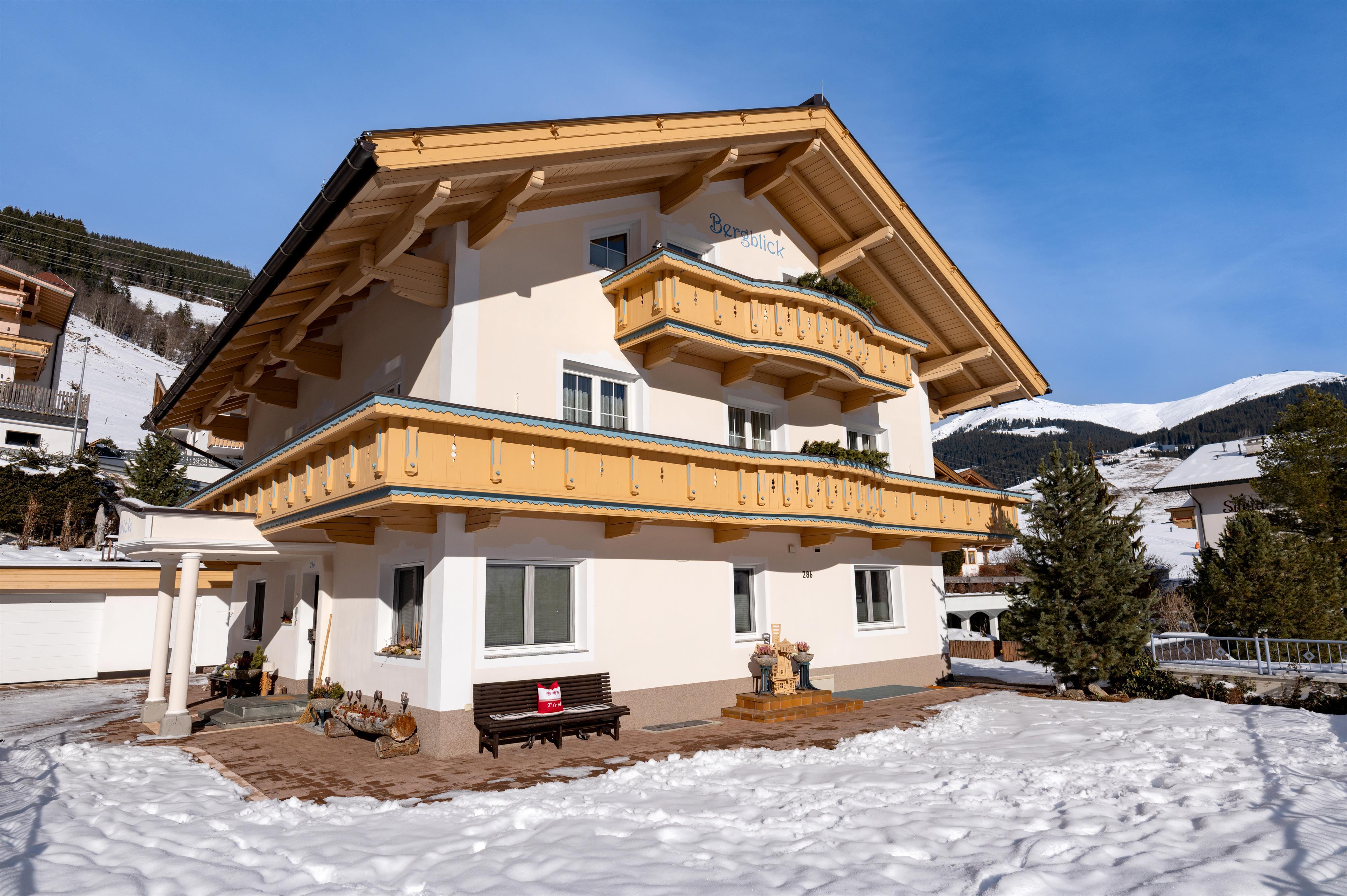 U volgt de hoofdweg tot aan Gasthof Oberwirt, hier slaat u de tweede oprit links in en volgt u de borden. Het huis met de carport BERGBLICK 286