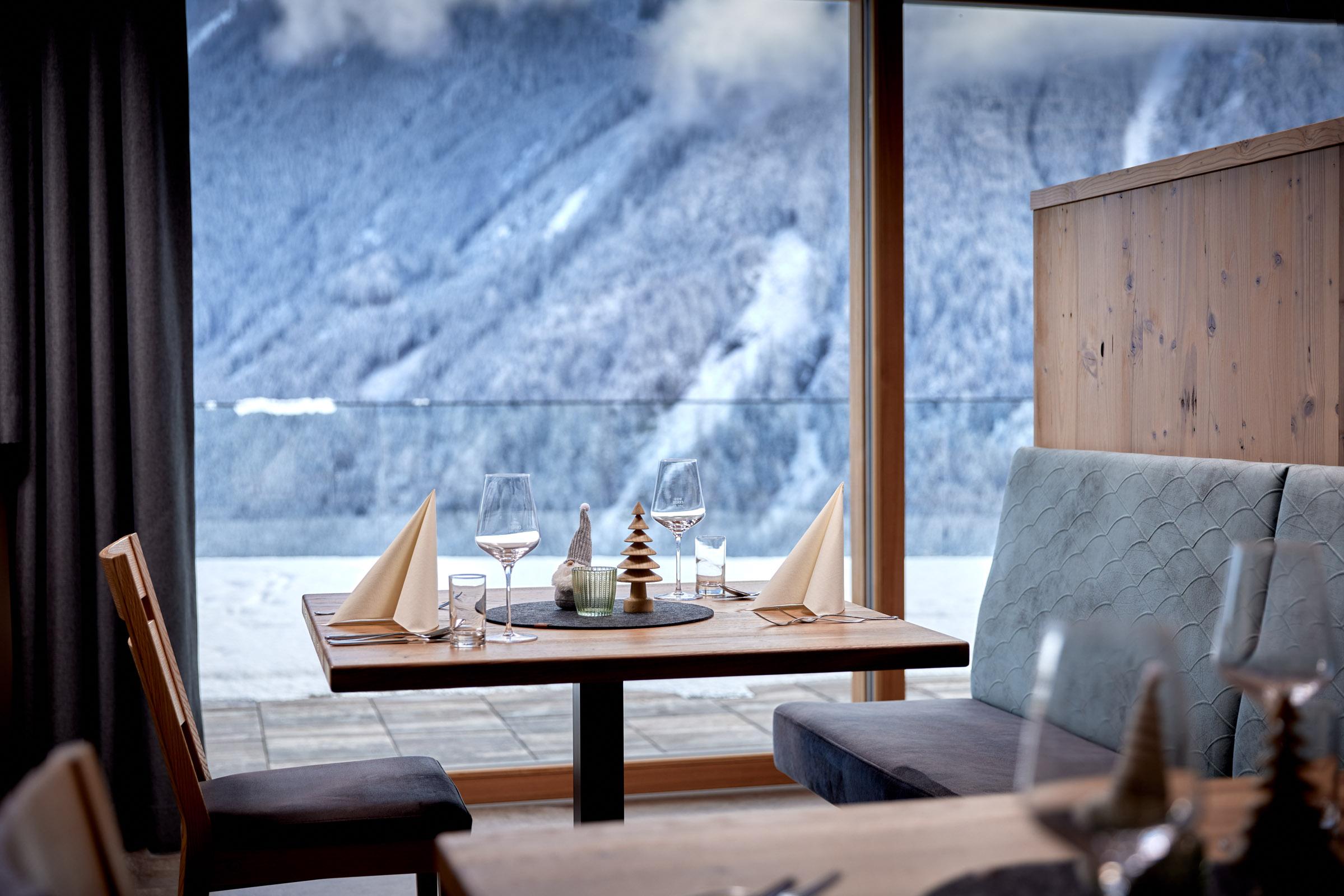 Sonnenterrasse und Panoramarestaurant - Produkte großteils aus regionaler Landwirtschaft.