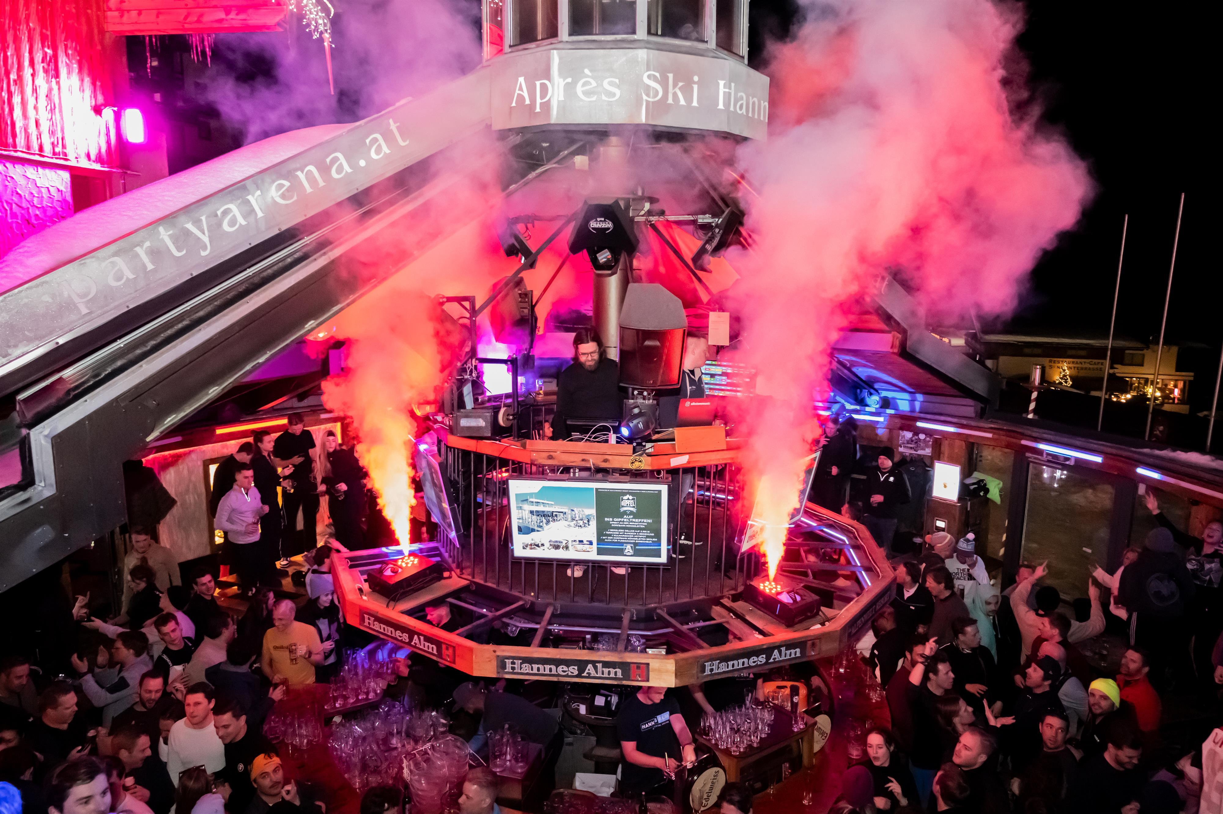Direkt von der Piste in die Party! In der HANNES ALM erwartet euch Apres- Ski der Extraklasse mit pulsierenden Beats, angesagten DJs und einzigartiger Stimmung - jeden Tag bis spät in die Nacht.