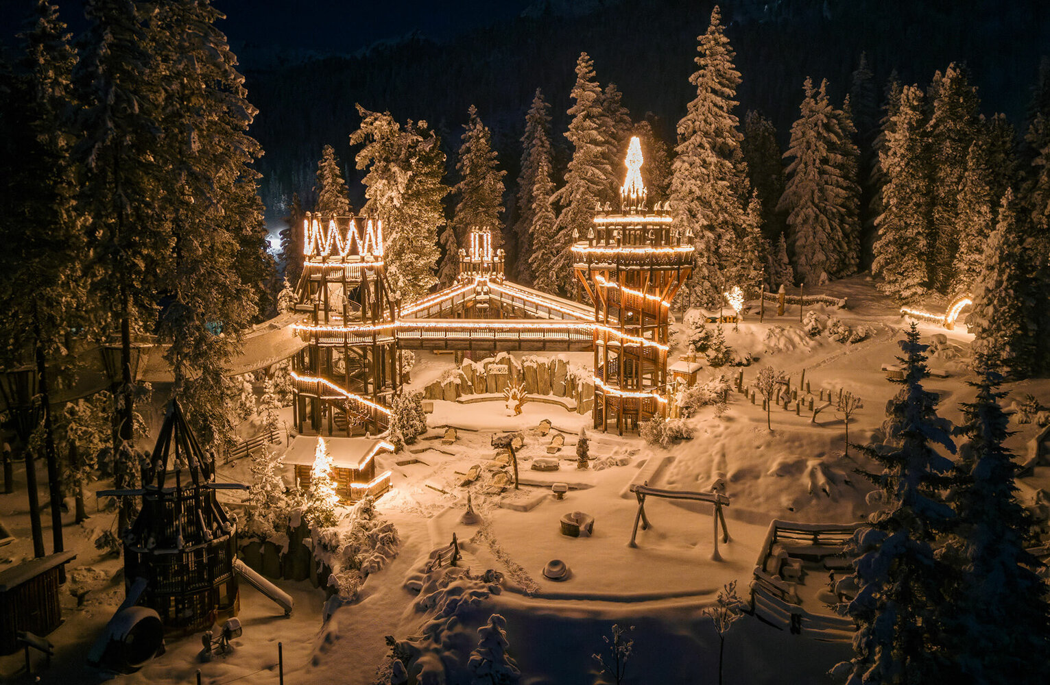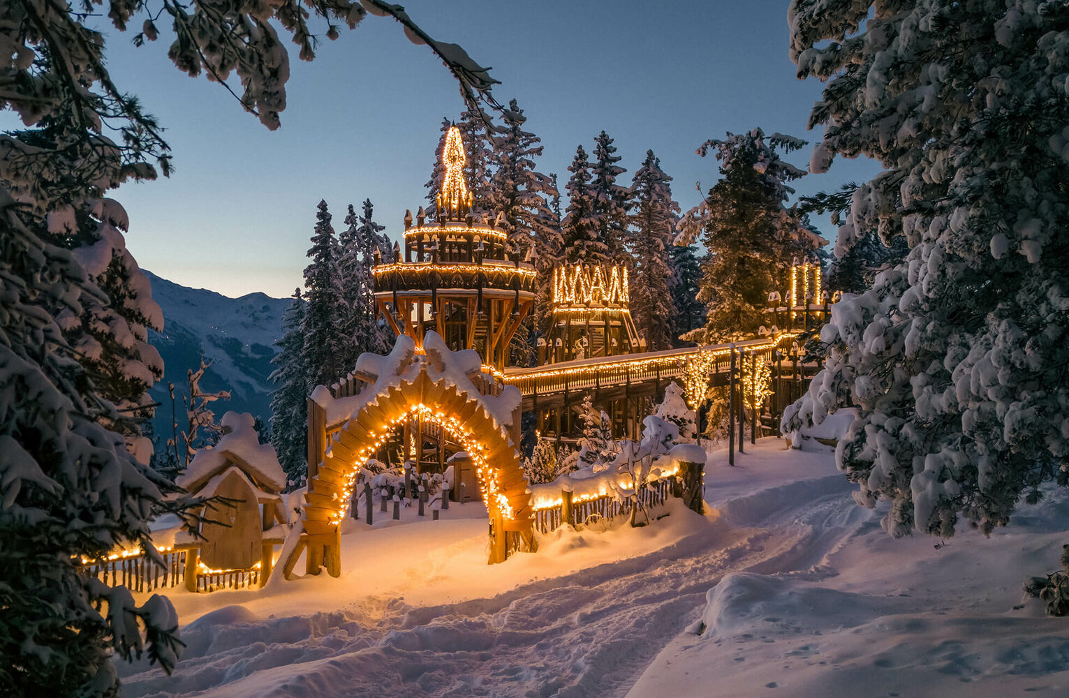 Die liebevoll gestaltete Weihnachtsbeleuchtung taucht das Fichtenschloss in ein märchenhaftes Ambiente, das perfekt für eine kurze Pause oder einen ausgedehnten Genussmoment ist. Hier findest du einen Platz zum Durchatmen, Staunen und Träumen – ein magischer Winterort, der deinen Tag in der Zillertal Arena unvergesslich macht.