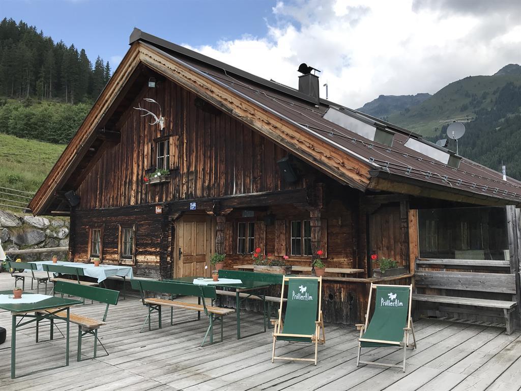 Auf der großen Sonnenterrasse kann man sich mit Zillertaler Hausmannskost verwöhnen lassen und den prächtigen Ausblick genießen.