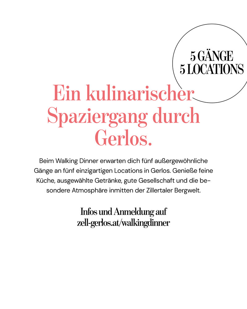 Auch im Sommer 2026 werden Dich wieder fünf Gänge in fünf verschiedenen Restaurants entlang der Gerlosstraße mit Getränkebegleitung und musikalischem Ausklang erwarten.