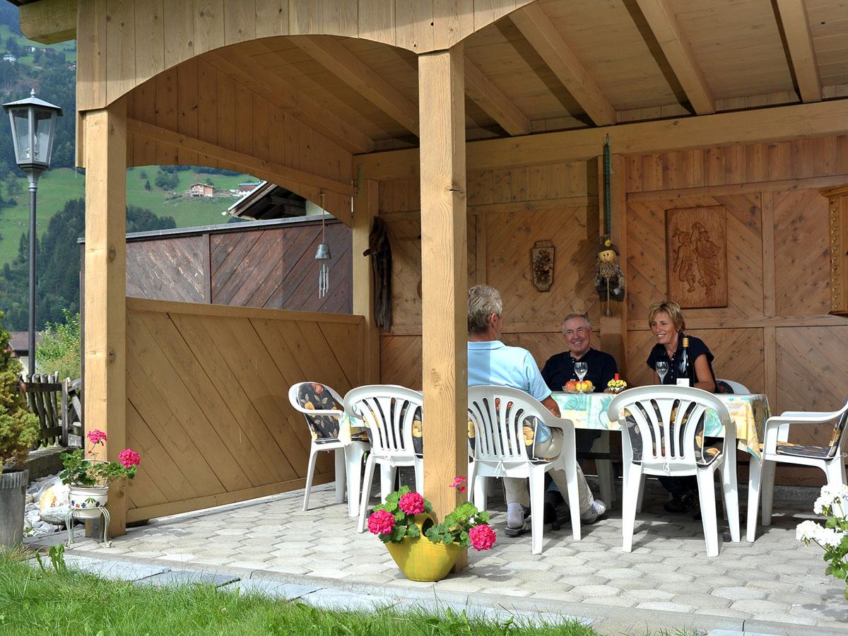Weiters bieten wir Ihnen eine sehr ruhige Liegewiese, eine große Terrasse mit offenem Kamin. Unsere gemütliche Laube in unserem Sonnengarten lädt Sie ein - zum entspannen und verweilen. Ihr Auto steht sicher auf unserem Parkplatz direkt am Haus.