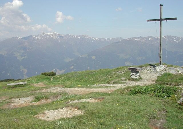 In kurzer Zeit hast du nun den Gipfel erreicht und hast einen prachtvollen Rundblick auf die östlichen Zillertaler Alpen, die westlichen Tuxer Vorberge sowie die Kitzbühler Alpen und die Rofangruppe.