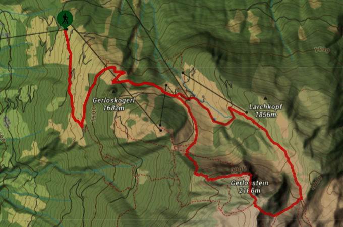 Von der Sonnalm aus geht es zum Gerlossteinhaus (1650m) und oberhalb der Seilbahnbergstation Gerlosstein zum Heimjöchl (1984m) -  am 2. Boden folgst du dem Steig der rechts weggeht und auf dem du zum Gipfelkreuz der Gerlossteinwand (2166m) gelangst - der Abstieg erfolgt durch die Latschengassen zurück zur Gerlossteinbahn und weiter zur Sonnalm.