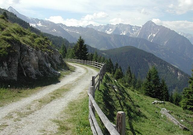 Gehe oberhalb der Bergstation der Gerlosstein-Seilbahn vorbei, wo du ein kurzes Stück auf einem Wirtschaftsweg wanderst. Diese Straße führt zur Sendeanlage. Du zweigst aber rechts ab auf den Steig, der sehr gut markiert ist. Auf dem zweiten "Boden" siehst du zahlreiche Wegtafeln. Gehe den bezeichenten Weg "Gerlossteinwand bzw. Kotahorn-Alm" rechts hinauf. Halte dich nun an den linken Weg, der in einem weiten Bogen hinauf zum neu angelegten und ein Stück fast eben verlaufenden Weg führt.